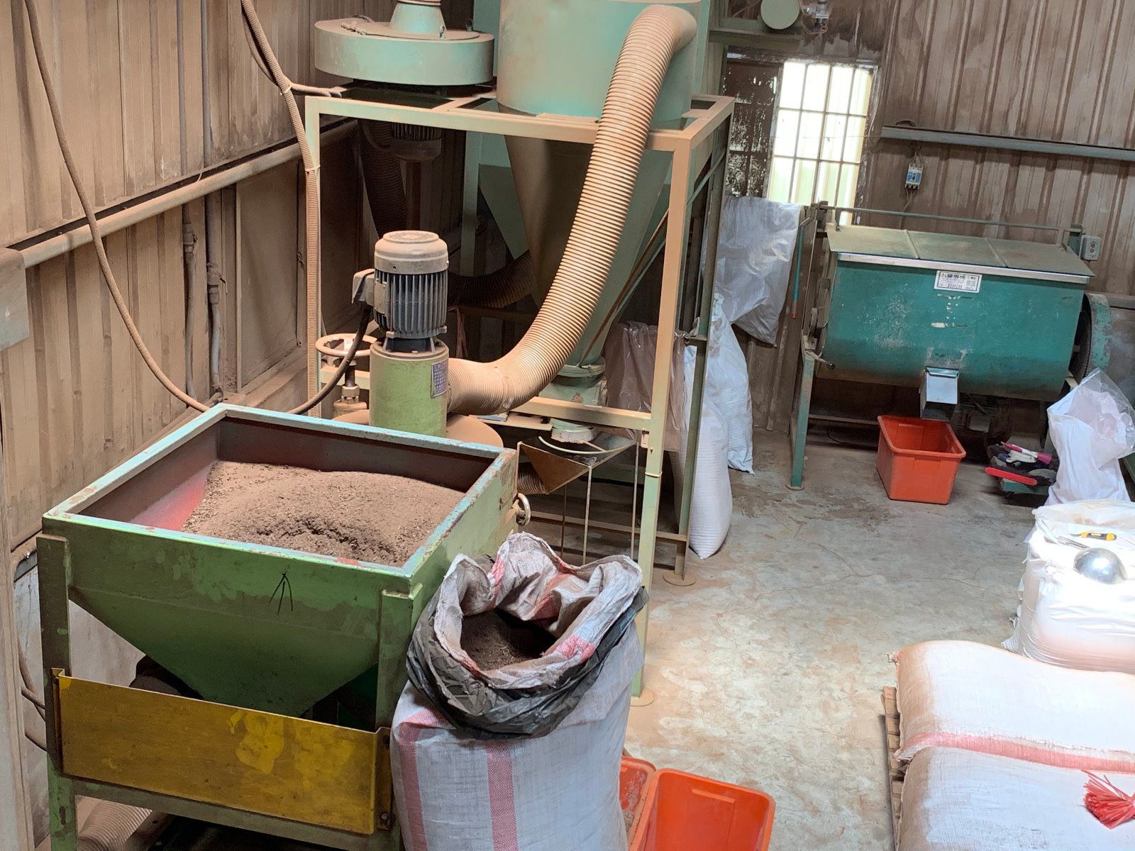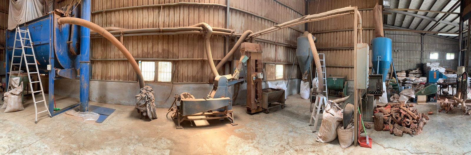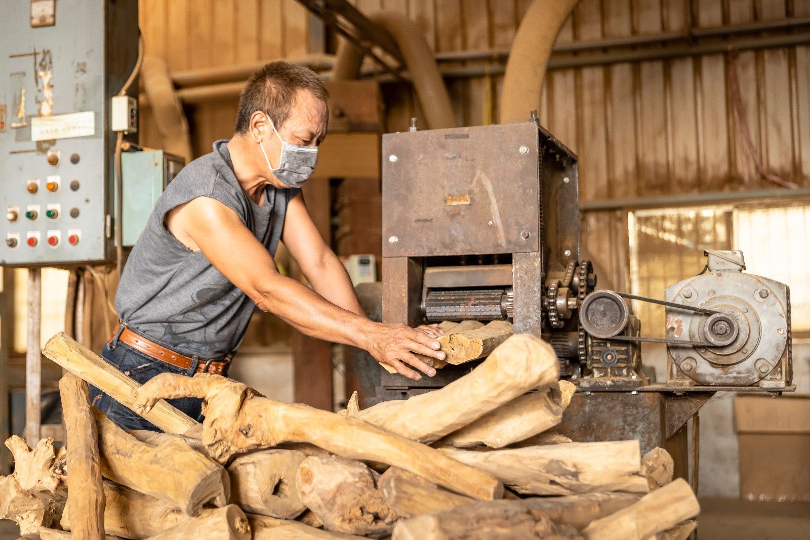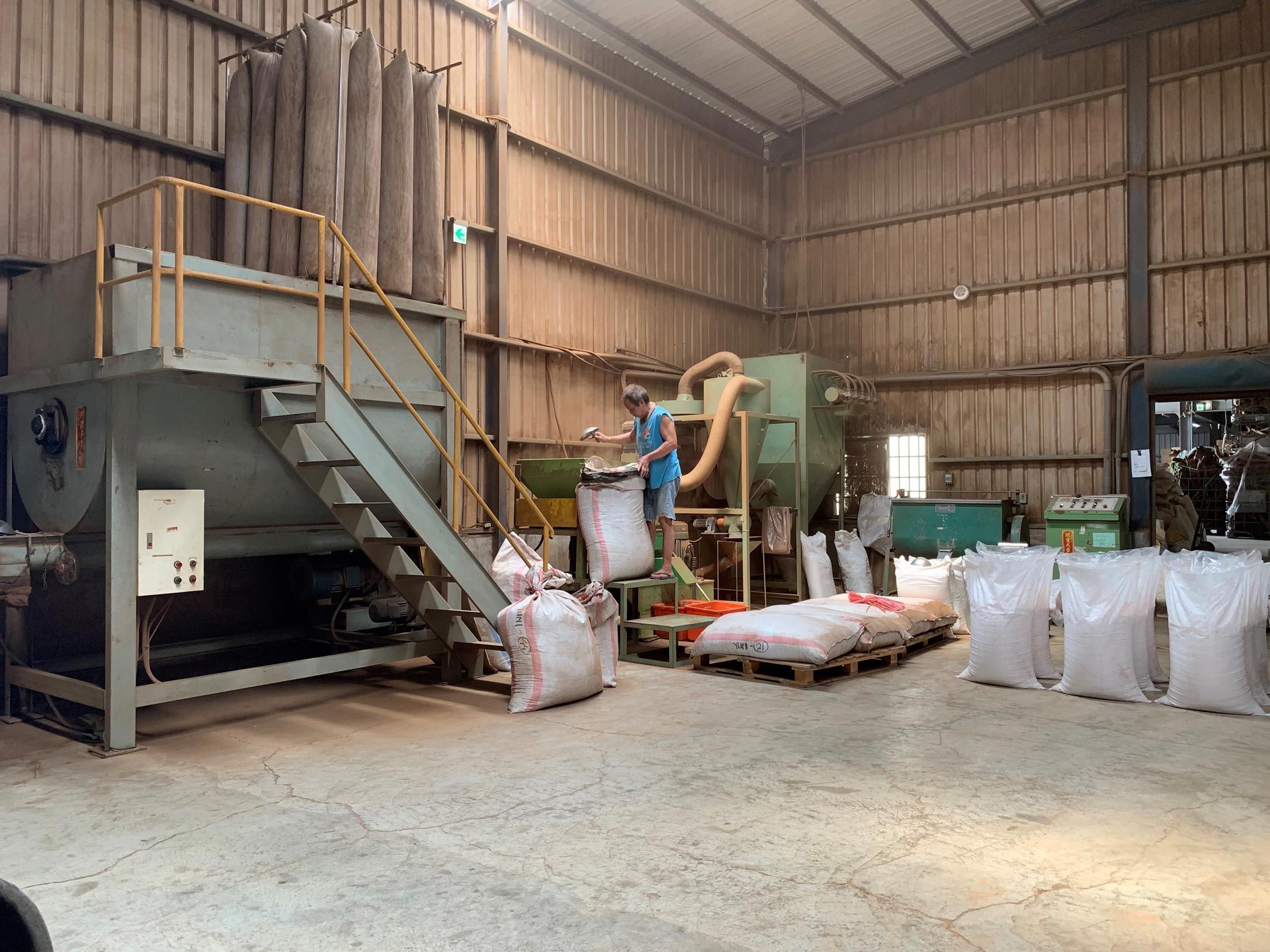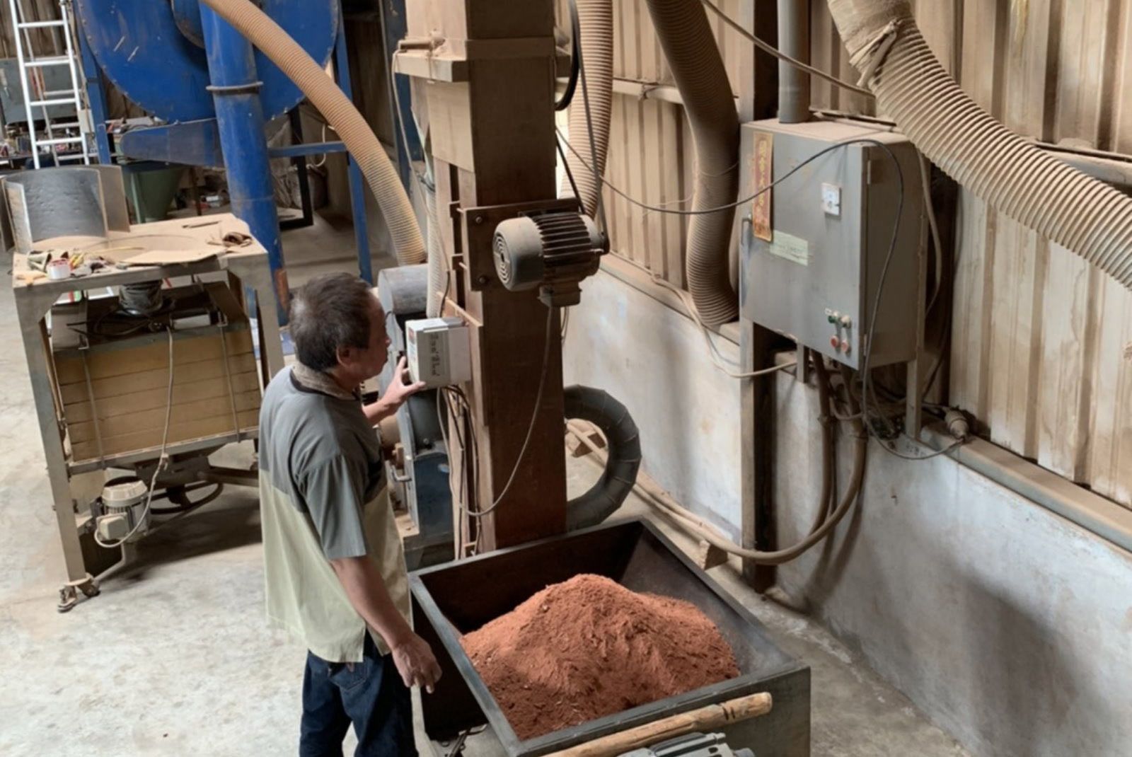 原料過程:原木裁切 →碾碎 →研磨成粉末 →成品裝袋