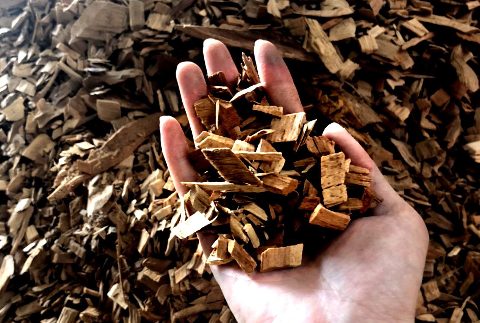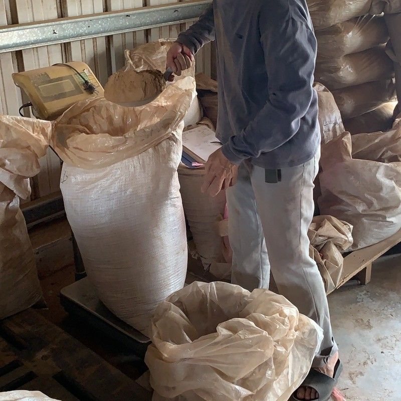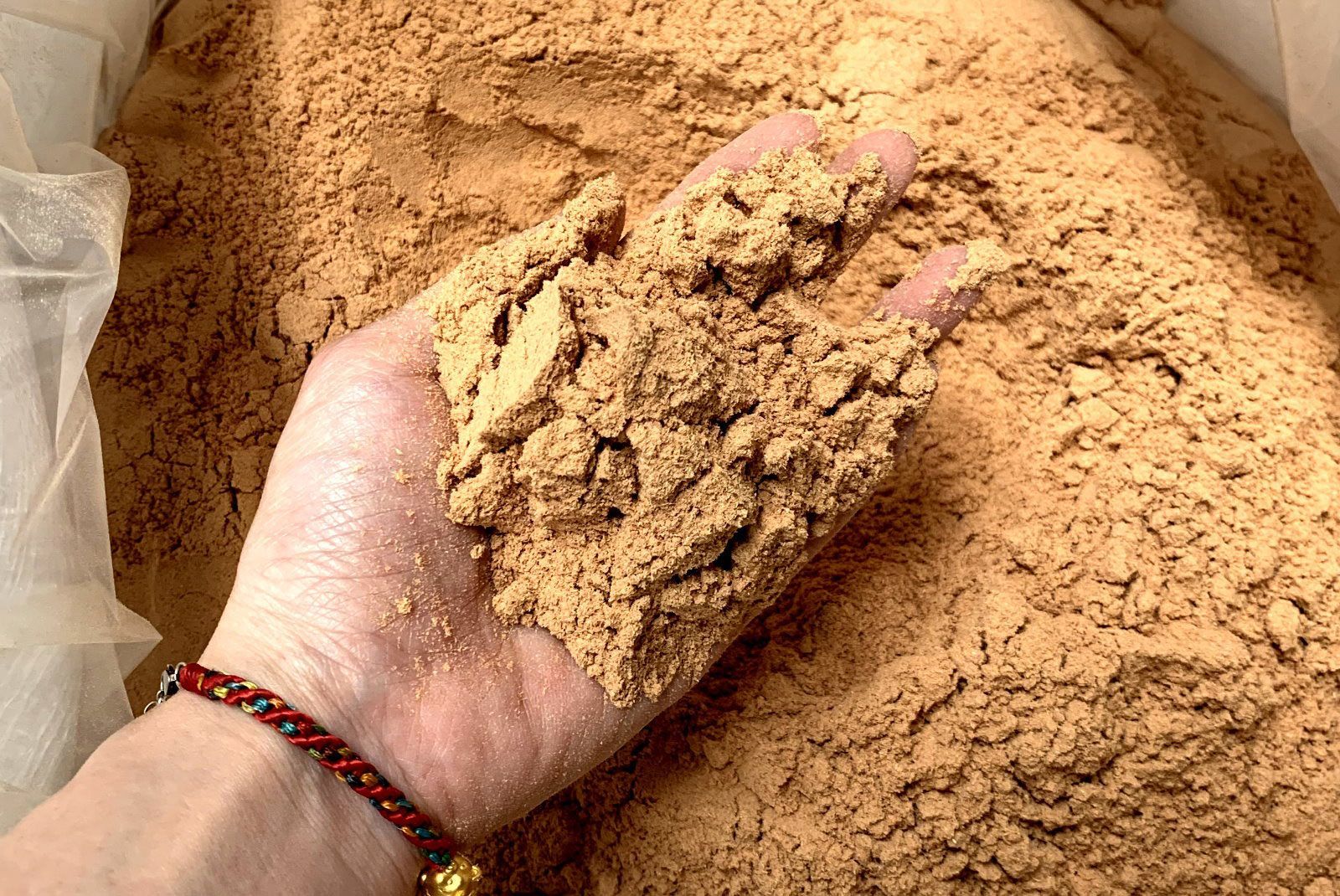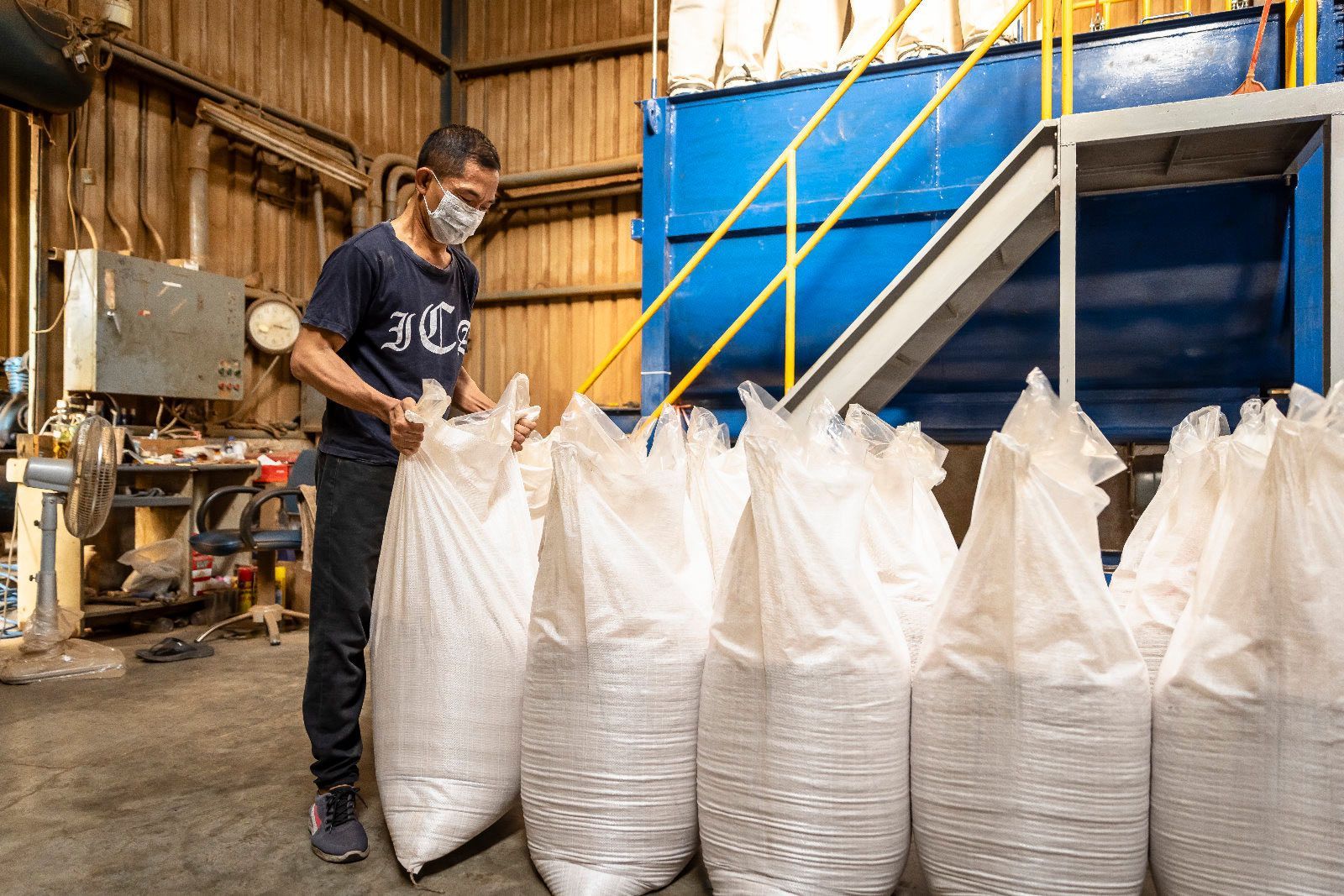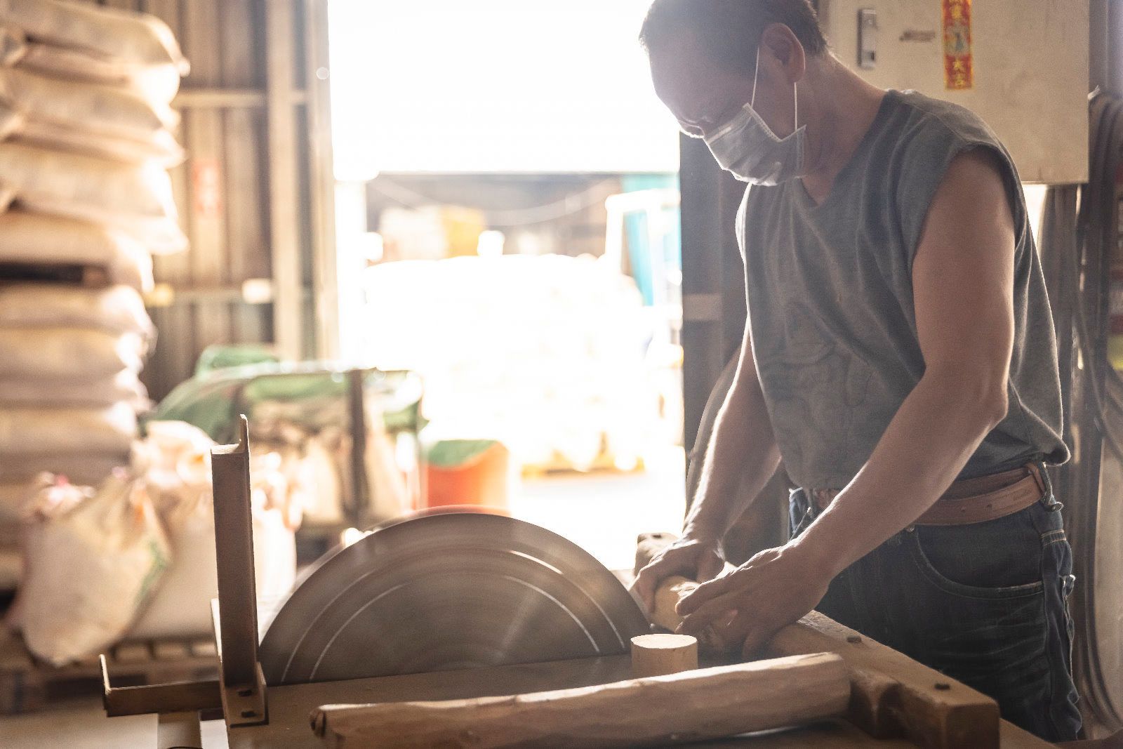 原料過程:原木裁切 →碾碎 →研磨成粉末 →成品裝袋